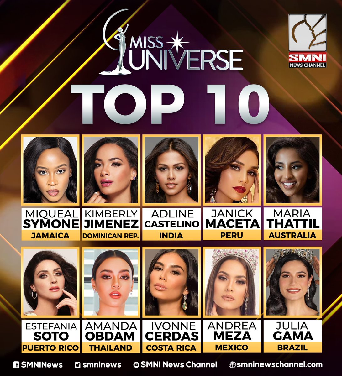 Amanda obdam, miss universe thailand 2020 competes on stage as a top 10 finalist in an evening gown of her choice during the 69th miss universe competition on may 16, 2021 at the seminole hard rock hotel & casino in hollywood, florida airing live on fyi and telemundo. The philippines may have fallen from the top 10 but the competition continues! Watch the full coverage of miss universe 2020 coronation night held on may 17. Mc công bố top 5: 12k likes · 97 talking about this.